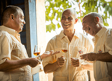 Slowly swirl the rum in the glass and hold it to the light to observe the “tears” – their slowness and thickness indicate the oiliness of the rum and the conditions of ageing.